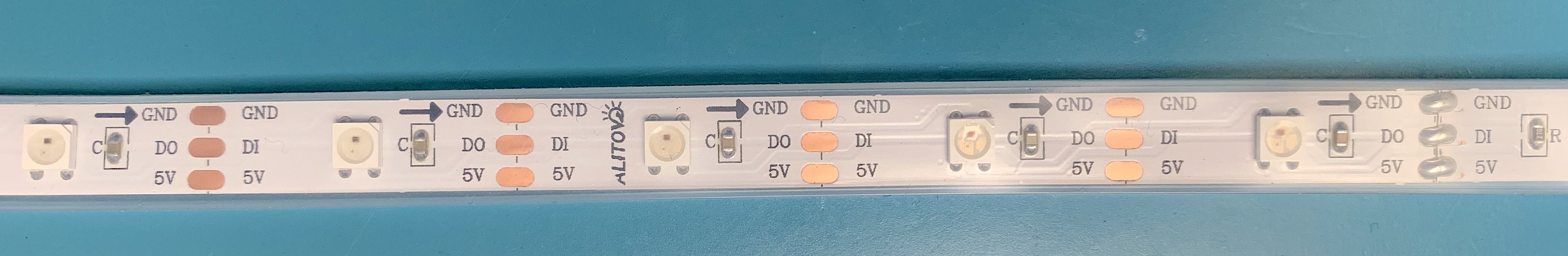 Sticker shock. $84.75 for 5 meters of 32 LED/meter NeoPixel strip. For a couple of weeks I just put the whole concept on the shelf. That was just too expensive to justify for such a frivolous way to light some stairs. But, the idea crept back into my head, and eventually I started poking around on the web looking for less expensive strips of NeoPixels (well, technically they aren't NeoPixels as that's Adafruit's brand name for them). Turns out you can find lots of sources of 5 meter reels of WS2812B Individually Addressable RGB LED Light Strips, that cost considerably less than $85. I'm sure these strips aren't up to Adafruit's standards, but they would have to do to keep the cost of this project in check. Now the questions: Which source to use? And, which type to purchase?